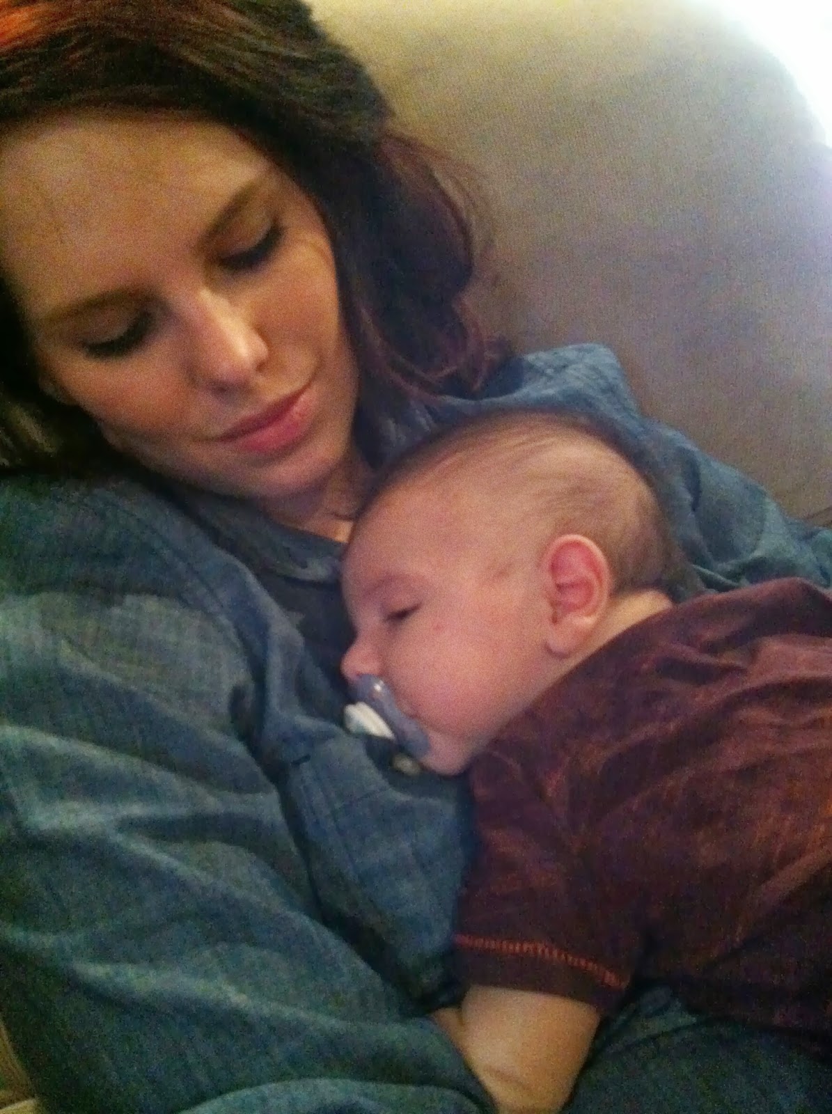 Sleeping: This dude loves his sleep!! He has been sleeping all night since he was 5 weeks old!!! Thank you Baby Jesus!! I am not sure how I would be able to work full time if he was up all night!! He is still in bed with us which is probably why he sleeps all night. I think he would probably be just fine in his bed but it is mommy with the problem!! I just can't let it go. I absolutely love sleeping with him. We sleep chest to chest with my arms wrapped around him and it is the best!! Being gone from him all day makes it even harder for me to make him go in his own bed because I just want to cuddle him!! He also loves sleeping on his belly. We tried his back for a while and soon realized that he hated it. I am learning that just because the "experts" say to do something I should not always listen. I am now a firm believer in what works for baby and not what the "experts" say.